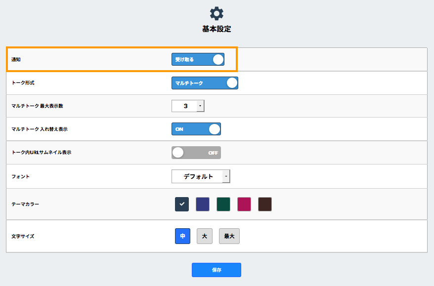 通知の有無を設定/変更する 通知の有無を設定/変更する メッセージの受信、タイムライン投稿などの新着情報の通知の設定を行います。 [ 基本設定]を開き、[通知]を[受け取る]または[受け取らない]にして[保存]をクリックしてください。 フォームでのお問合わせ ご質問・ご不明点については、お問合わせフォームよりお気軽にお問合せください。 お問合せフォーム