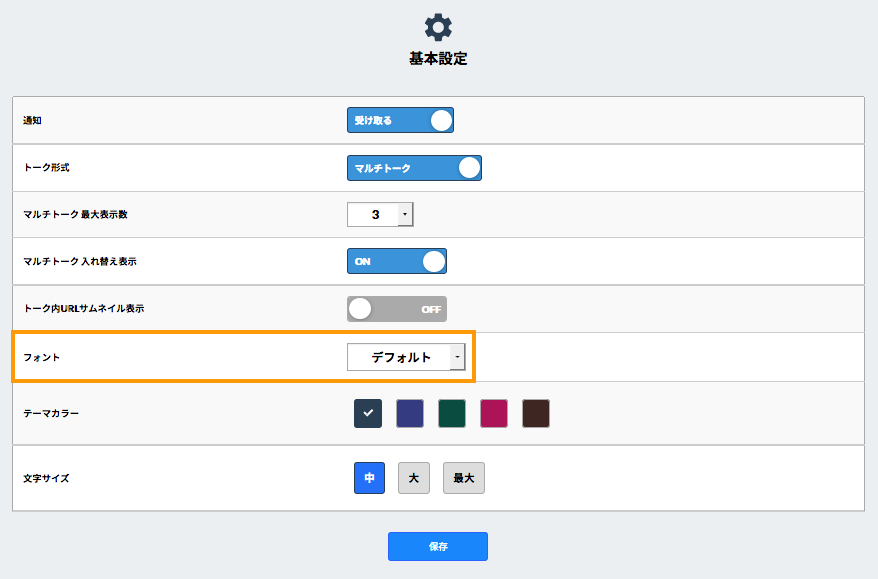 [基本設定]を開き、[フォント]からお好みのフォントをクリックすると、現在のページの文字のフォントが切り替わるので、確認してよければ[保存]をクリックします。