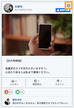 確認メッセージの[削除する]を選択すると投稿を削除します。※2