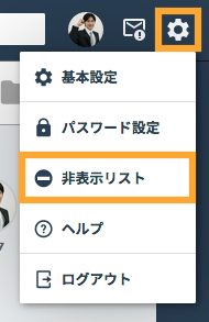 非表示リストを確認する場合は[]をクリックし、表示されるリストから[非表示リスト]をクリックしてください。