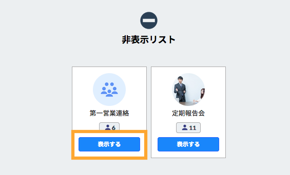 非表示を解除したい場合は解除したいトークの[表示する]をクリックしてください。