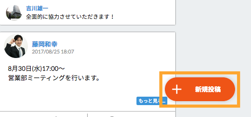 または、ノート画面の右下にある[+]にマウスを移動し、[新規投稿]をクリックすることで開くことができます。