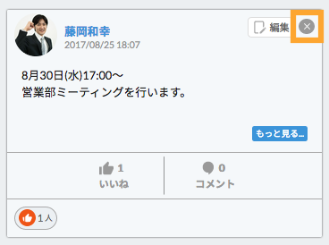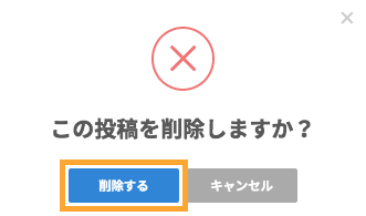 投稿の右上にある[×]をクリックすると削除を確認する画面が出ます。※1